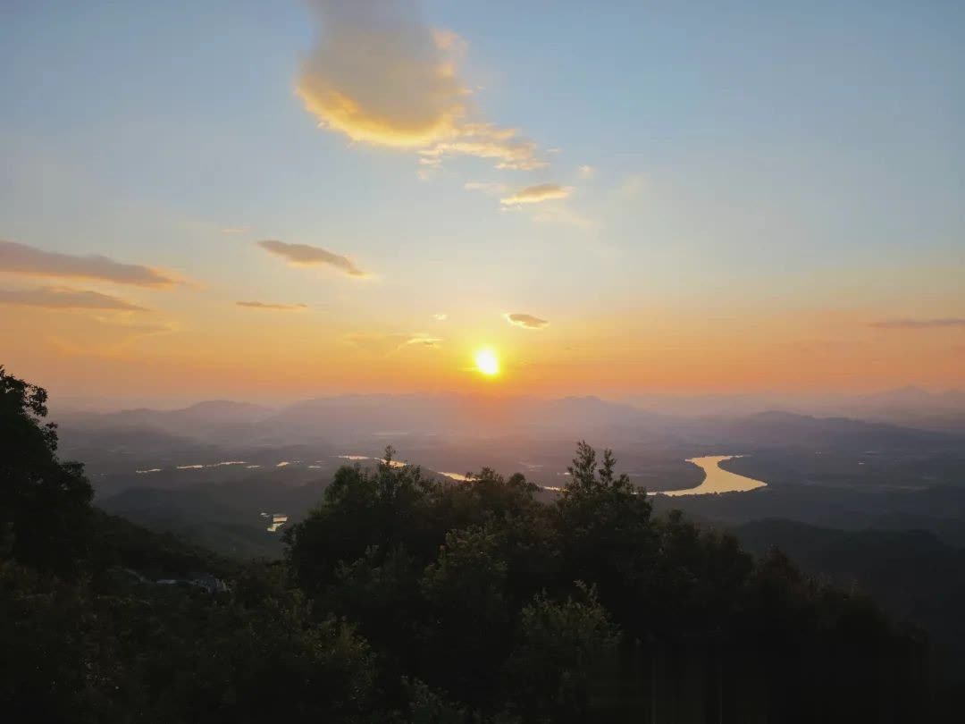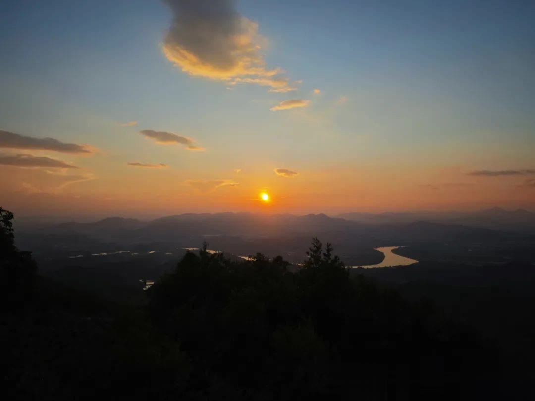 第一次看到日落晚霞与远处的增江S湾同框,心里还有点小激动。