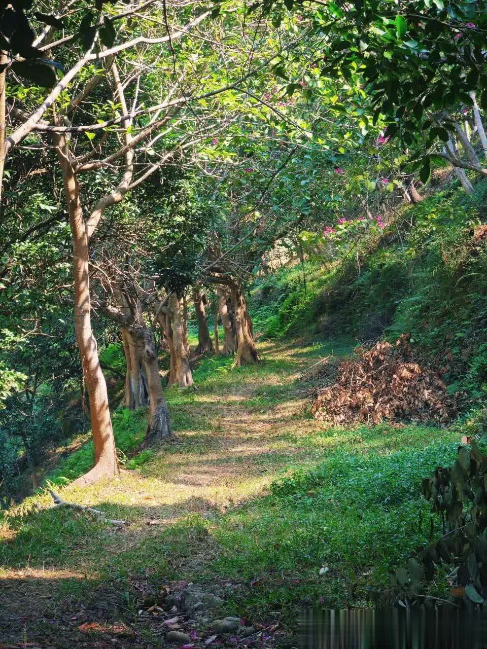 一路往前走,两旁的大树形态各异,脚底下的枯叶沙沙作响,好奇心驱使我继续往前走,竟然有种探秘的紧张刺激感。