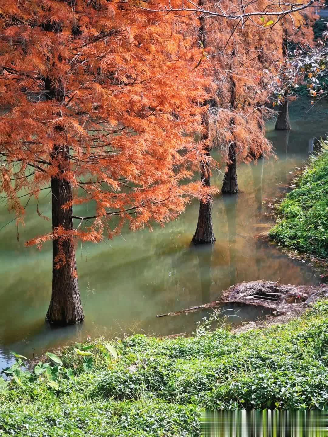 踏入1月,广州的落羽杉红得那么肆无忌惮,而这里的落羽杉更是有过之而无不及,恨不得将它最热情的一面为你展示出来。